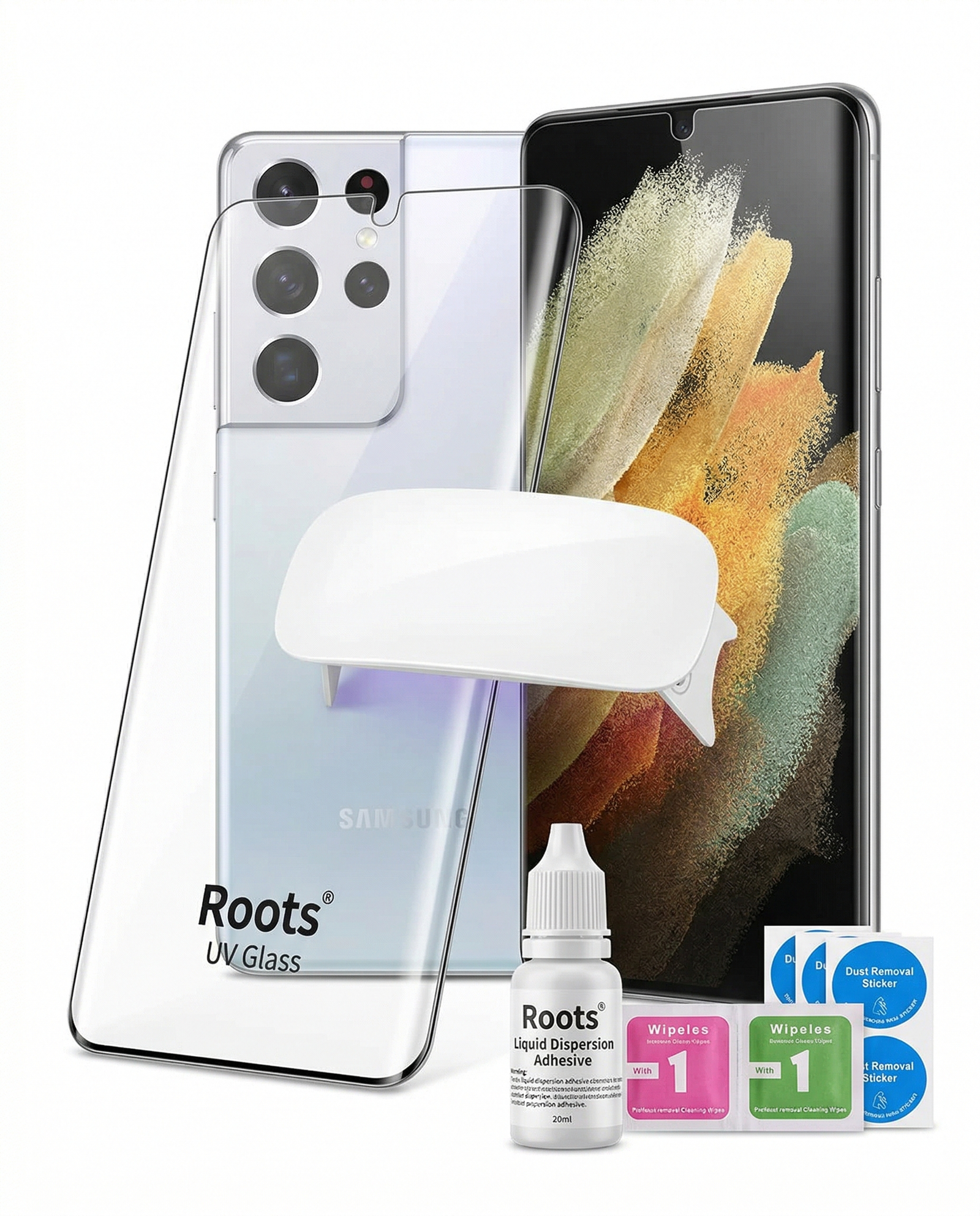 390,00 EGPاسكرينة زجاجية روتس UV باللصق السائل الداعمة للبصمة لهاتف سامسونج S21 ألترا (Roots UV Glass – Samsung Galaxy S21 Ultra)